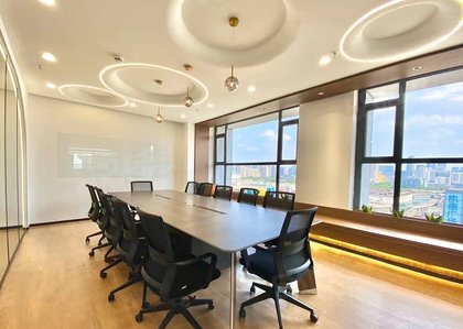 房间 状态:精装修,透明玻璃大门,吊顶,室内总经理室、经理室、会议室等间数个,另加敞开式办公工区,房间户型方正无柱子,保养比较好,干净整洁,也可按照贵司风格做适合您风格的装修,使用率达百分之78%,落地玻璃窗,大面积采光,室外无遮挡。