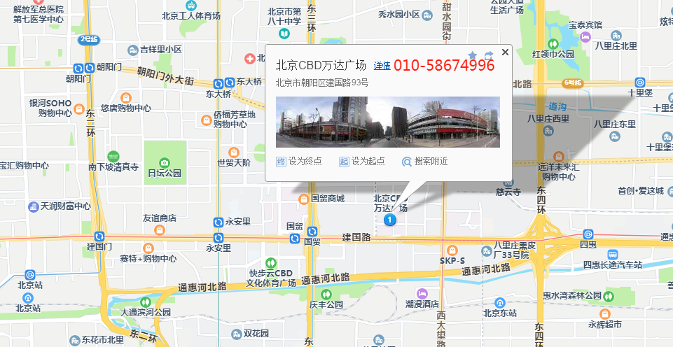 万达集团在北京CBD核心区启动北京万达广场项目,位于北京市朝阳区东三环与东四环之间,建国路(长安街东延长线)北侧,万众瞩目的北京市中央商务区(CBD)核心地段,与著名的国贸大厦、京广中心近在咫尺,项目周边社区成熟,交通便利,道路四通八达,涵盖五星级酒店、5A写字楼、大型主题商业、国际商务公寓等多种功能。